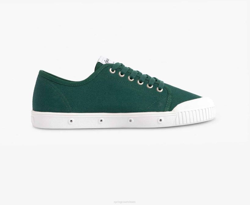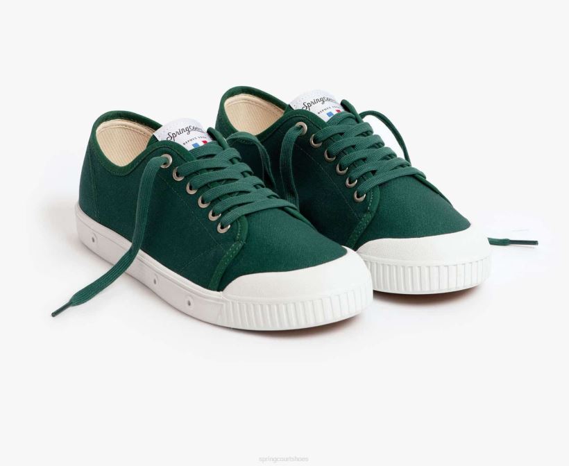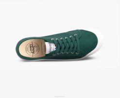 The colourful pine green canvas upper highlights the bold lines of our tennis shoe with its ventilated rubber sole.