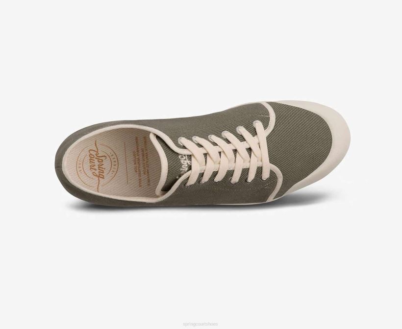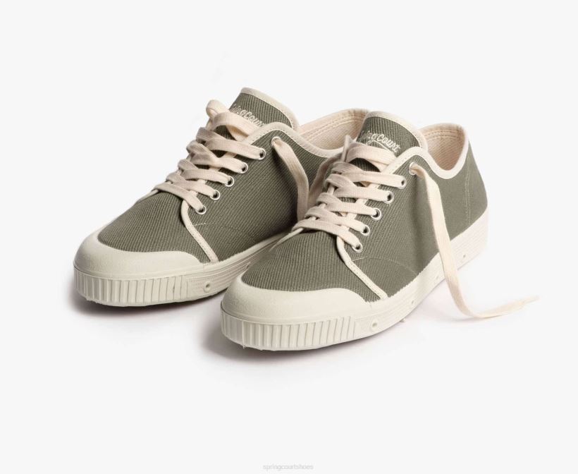The green is a smart timeless must-have, the cotton twill upper highlighting the bold lines of our tennis shoe with its ventilated white rubber sole.