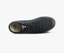 The monochrome black design’s canvas upper highlights the bold lines of our tennis shoe with its ventilated rubber sole.
